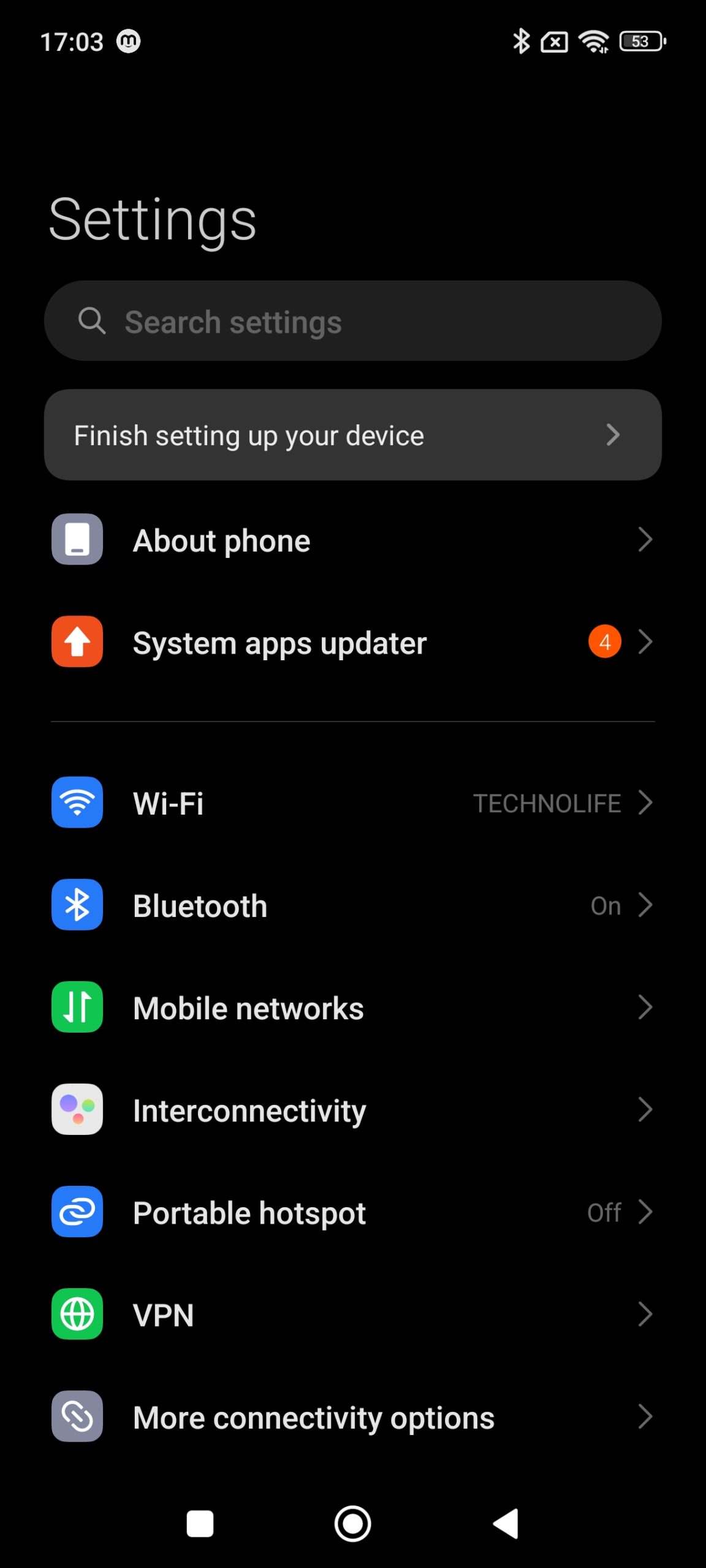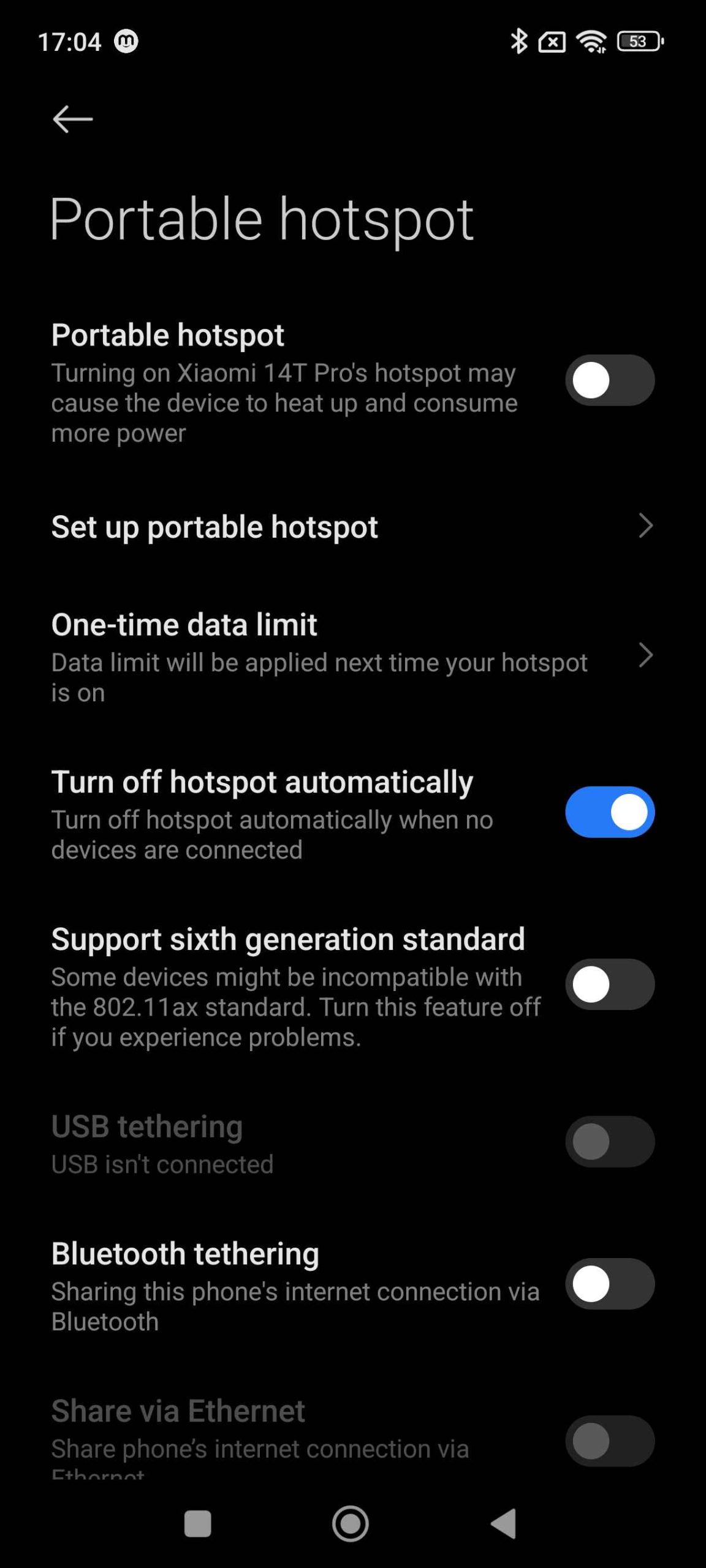 زمانی که وارد تنظیمات میشوید، میتوانید به صورت جداگانه وارد بلوتوث، موبایل نتورک و تنظیمات هات اسپات شوید.